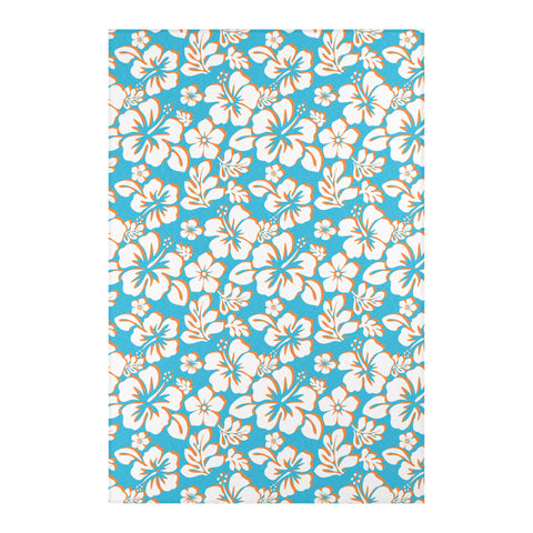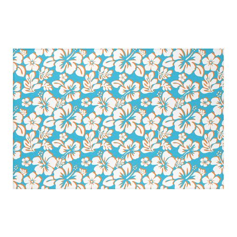 Aqua Blue, Orange and White Hawaiian Flowers Area Rug – Extremely Stoked® Beach Home Decor