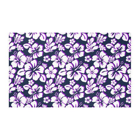 Navy Blue, Purple and White Hawaiian Flowers Area Rug – Extremely Stoked® Beach Home Decor
