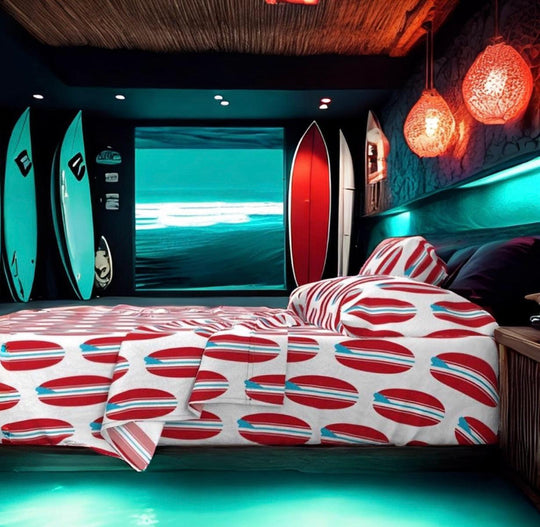 👉 Shop all Classic Surfboards Sheet Sets, browse all Hawaiian and Surf Style Surfer Bedding Sheet Sets, or Shop by Surfboard Scale/Size to find your perfect vibe.