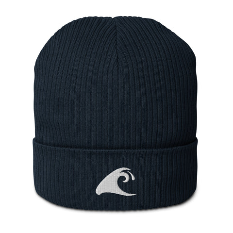 Navy Blue Organic Cotton Beanie with Epic Wave Logo | Eco Surf Style Winter Hat by Extremely Stoked®