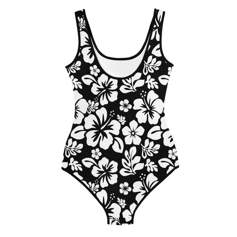Black and White Hawaiian Flowers Girls One-Piece Swimsuit – Eco Swimwear by Extremely Stoked®