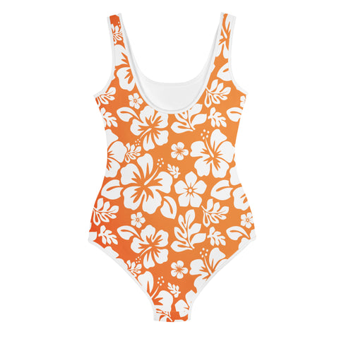 Orange and White Hawaiian Flowers Girls One-Piece Swimsuit – Eco Swimwear by Extremely Stoked®