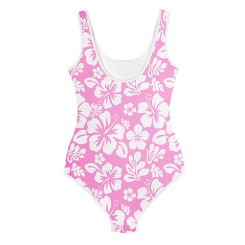 Pink and White Hawaiian Flowers Girls One-Piece Swimsuit – Eco Swimwear by Extremely Stoked®