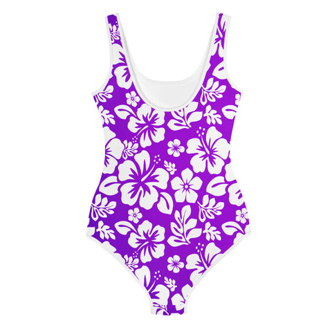 Purple and White Hawaiian Flowers Girls One-Piece Swimsuit – Eco Swimwear by Extremely Stoked®