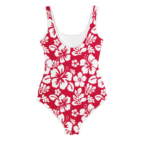 Red and White Hawaiian Flowers Girls One-Piece Swimsuit – Eco Swimwear by Extremely Stoked®