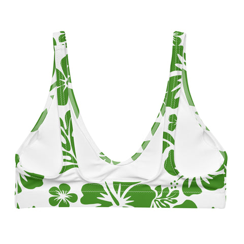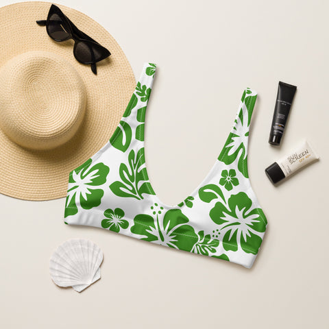 Fresh Green Hawaiian Flowers on White Halter Bikini Top – Eco Swimwear by Extremely Stoked®