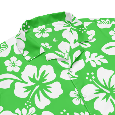 White and Lime Green Hawaiian Print Aloha Shirt – Eco Apparel by Extremely Stoked®