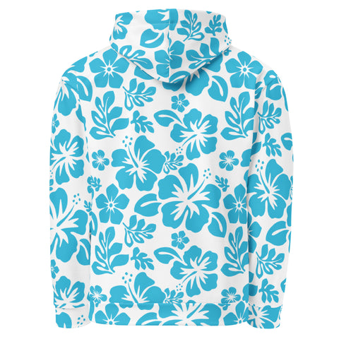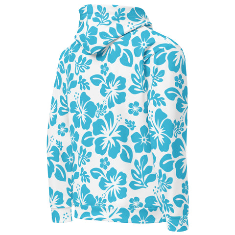 Aqua Blue Hawaiian Flowers on White Premium Cotton Hoodie – Extremely Stoked®