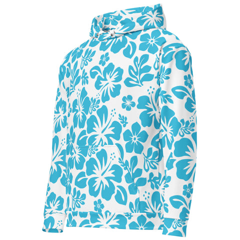 The Aqua Blue Hawaiian Flowers on White Premium Cotton Hoodie delivers the laid-back joy of a Hawaiian shirt with the cozy comfort of a favorite hoodie — a standout piece designed for good feels, all day long.