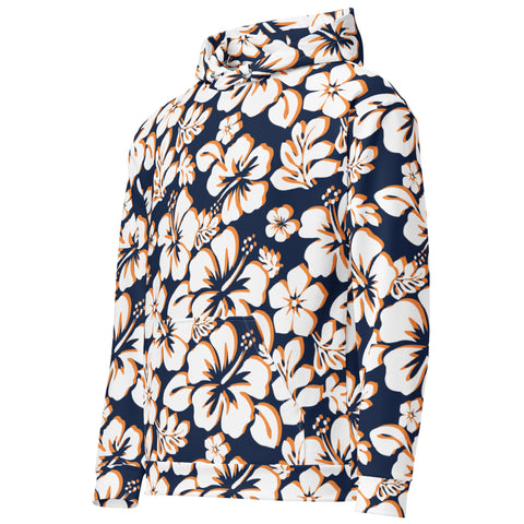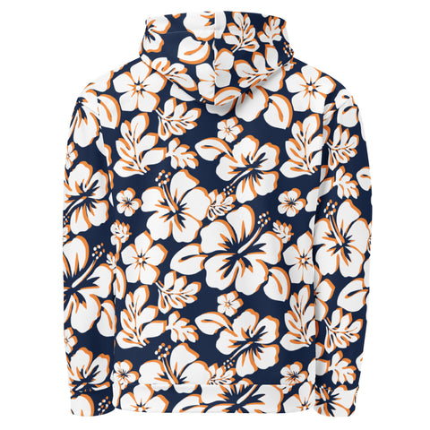 Navy Blue, Orange and White Hawaiian Flowers Premium Cotton Hoodie - Extremely Stoked®