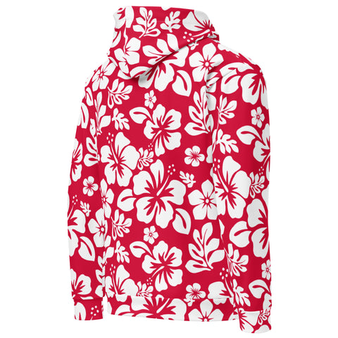 Red and White Hawaiian Flowers Premium Cotton Hoodie - Extremely Stoked®