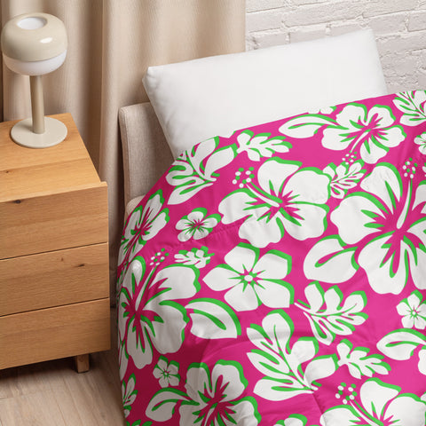 Hot Pink, White and Lime Green Hawaiian Flowers Comforter – Extremely Stoked® Essentials Collection