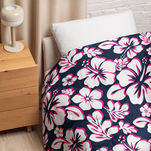 Navy Blue, White and Hot Pink Hawaiian Flowers Comforter – Extremely Stoked® Essentials Collection