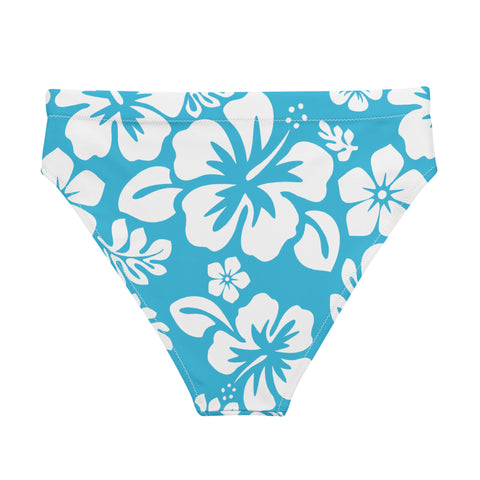 White Hawaiian Flowers On Ocean Aqua Blue High Waisted Bikini Bottom – Eco Swimwear from Extremely Stoked®