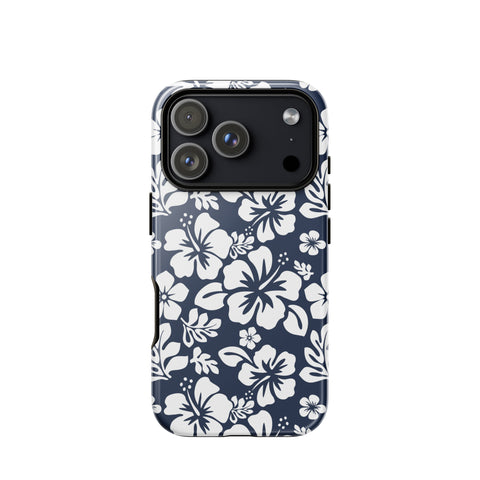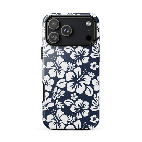 Navy Blue and White Hawaiian Flowers Tough Case for iPhone® – Extremely Stoked®