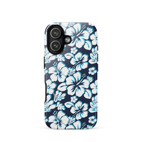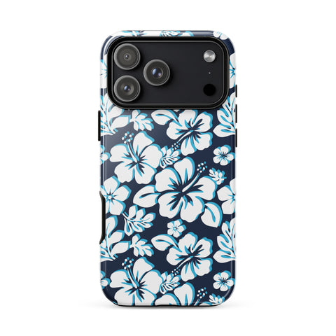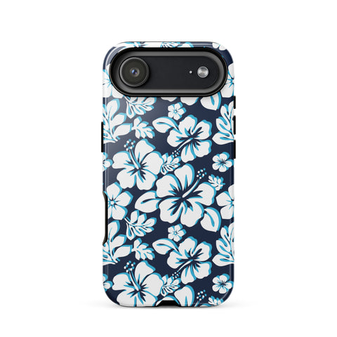 Navy Blue, Aqua Blue and White Hawaiian Flowers Tough Case for iPhone® – Extremely Stoked®