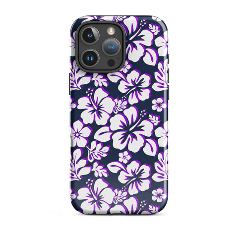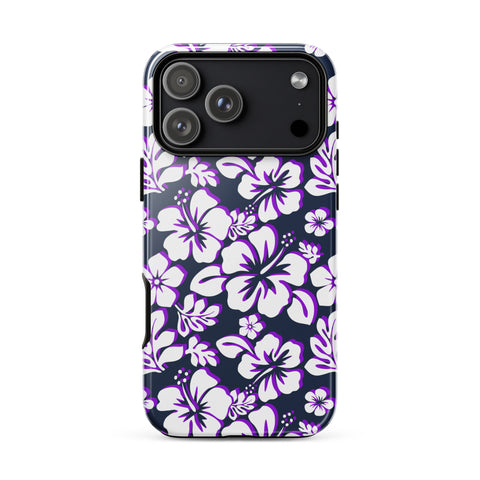 Navy Blue, Purple and White Hawaiian Flowers Tough Case for iPhone® – Extremely Stoked®