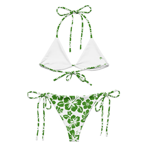 Fresh Green Hawaiian Flowers on White String Bikini – Eco Swimwear by Extremely Stoked®