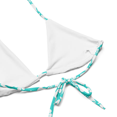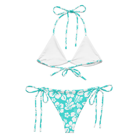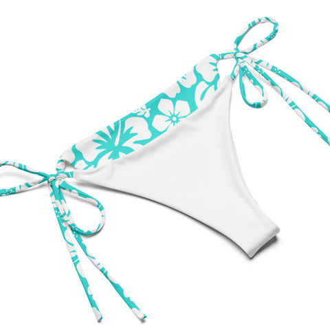 White Hawaiian Flowers on Turquoise String Bikini – Eco Swimwear by Extremely Stoked®