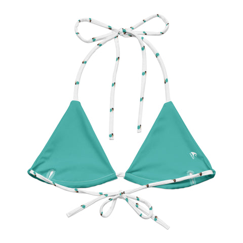 Crafted from soft, stretchy rPET fabric made from recycled plastic bottles, this eco-conscious bikini top adjusts for the perfect fit with classic tie-back and neck strings. It’s lightweight, flattering, and ready for anything—from sunrise surf sessions to golden hour dips.