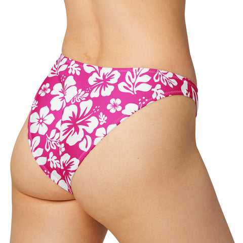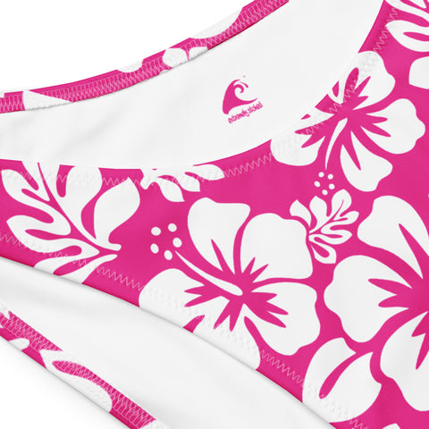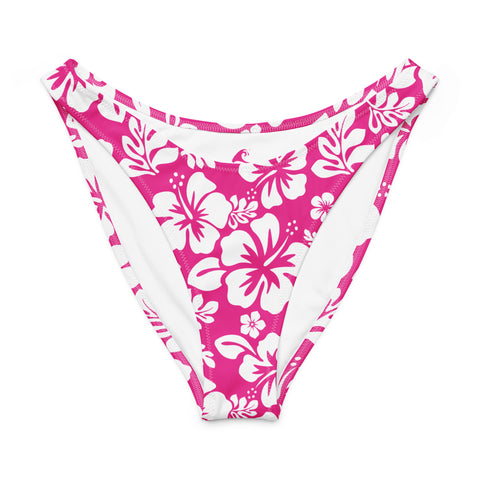 Hot Pink and White Hawaiian Flowers V-Cut Bikini Bottoms – Eco Swimwear by Extremely Stoked®
