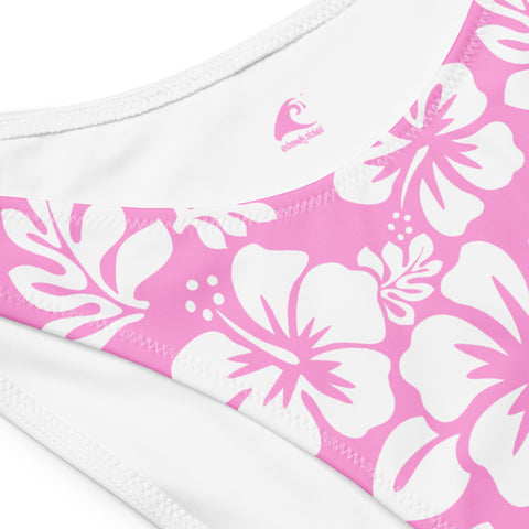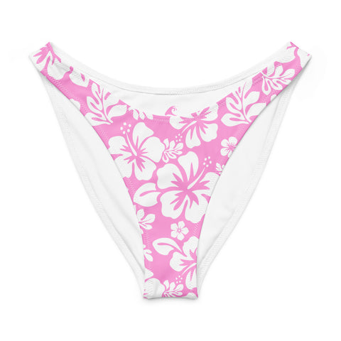 Pink and White Hawaiian Flowers V-Cut Bikini Bottoms – Eco Swimwear by Extremely Stoked®