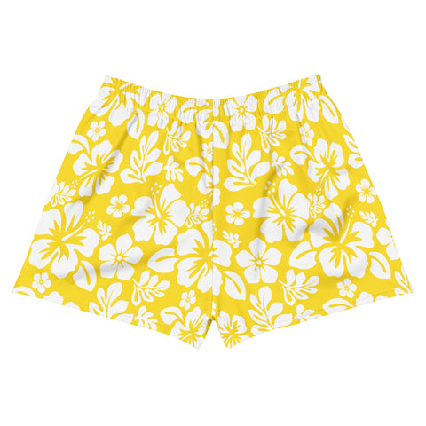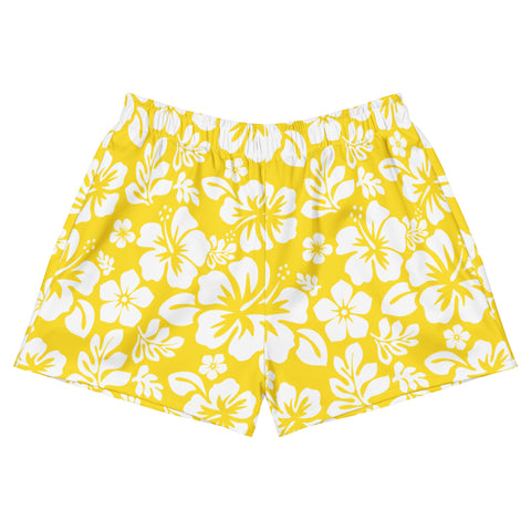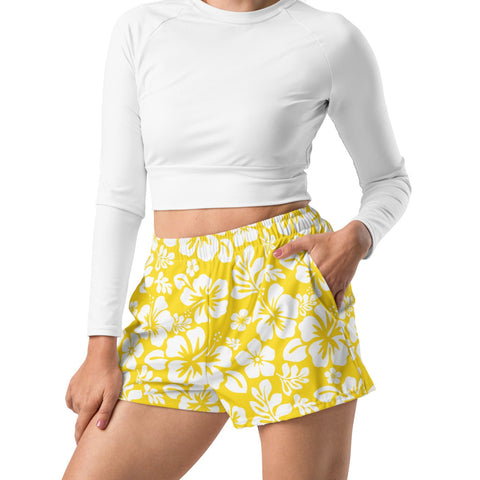Women’s Yellow & White Hawaiian Flowers Eco Athleisure Shorts | Extremely Stoked® Surf Style Activewear