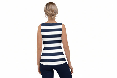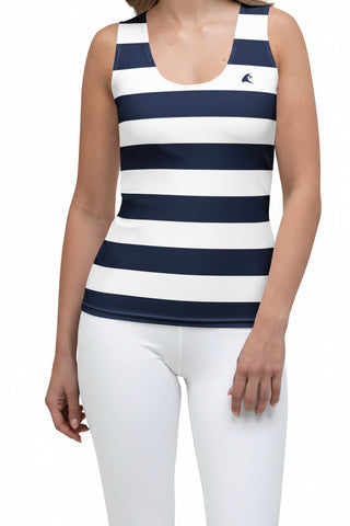 Navy Blue and White Beach Striped Women’s Tank Top | Eco Athleisure by Extremely Stoked®