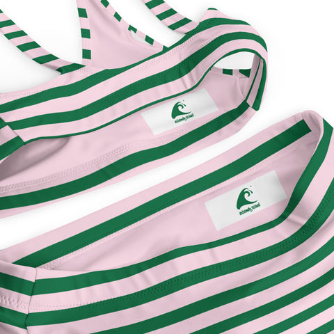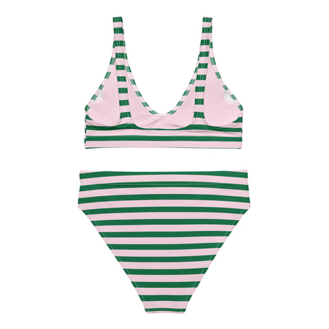 Green and Pink Beach Stripes High Waisted Bikini – Eco Swimwear by Extremely Stoked®
