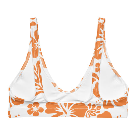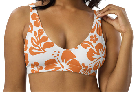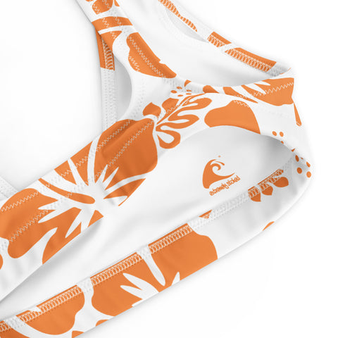 Orange Hawaiian Flowers on White Halter Bikini Top – Eco Swimwear by Extremely Stoked®