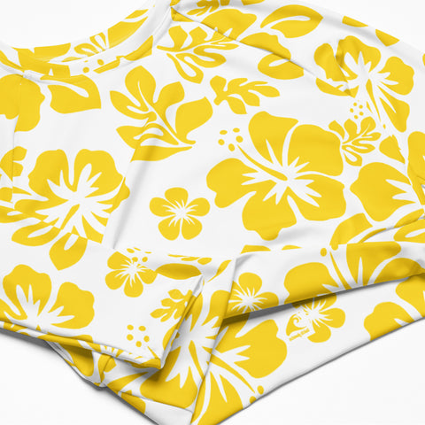 Yellow Hawaiian Flowers on White Long Sleeve Crop Top - Eco Swim & Athleisure by Extremely Stoked®