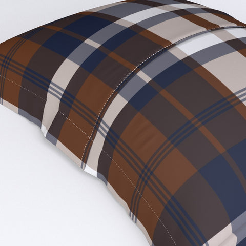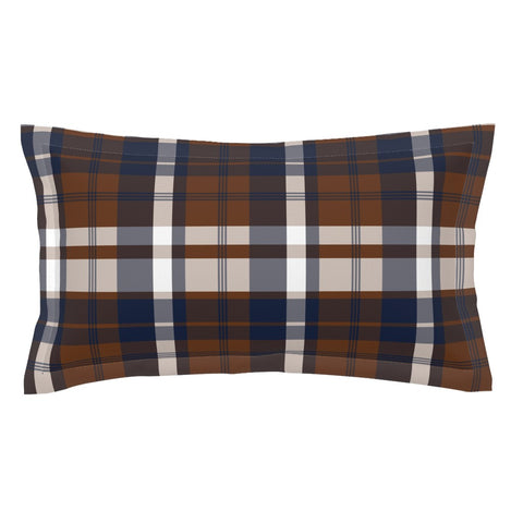 Brown and Navy Blue Surfer Plaid Pillow Sham - Extremely Stoked® Eco Beach Luxe Collection