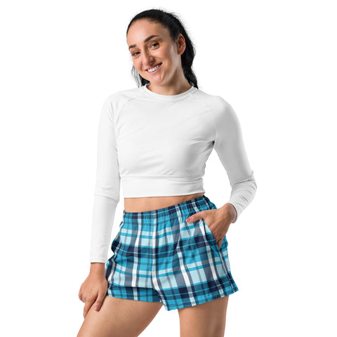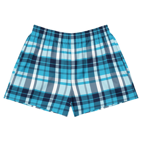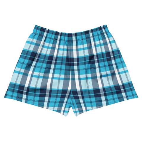 Women's Aqua and Navy Blue Plaid Eco Athleisure Shorts | Extremely Stoked® Surf Style Activewear