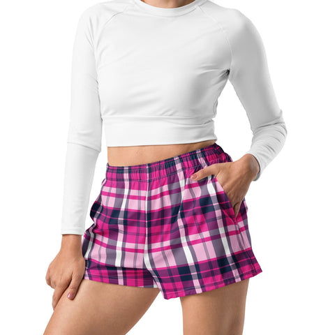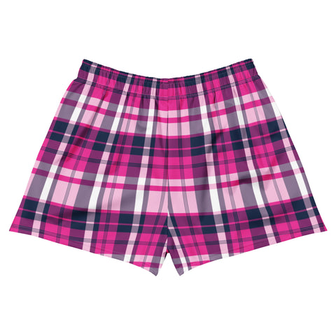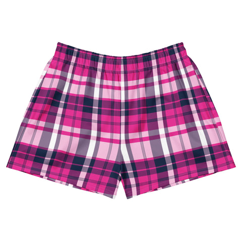 Women's Hot Pink and Navy Blue Plaid Eco Athleisure Shorts | Extremely Stoked® Surf Style Activewear