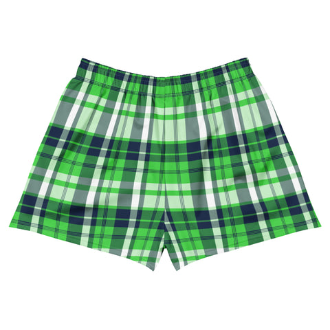 Women's Lime Green and Navy Blue Plaid Eco Athleisure Shorts | Extremely Stoked® Surf Style Activewear