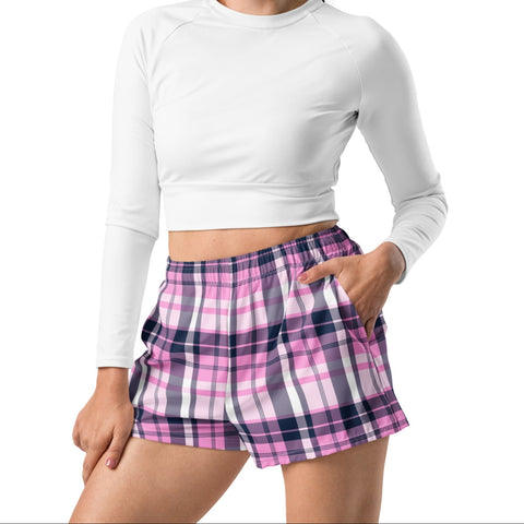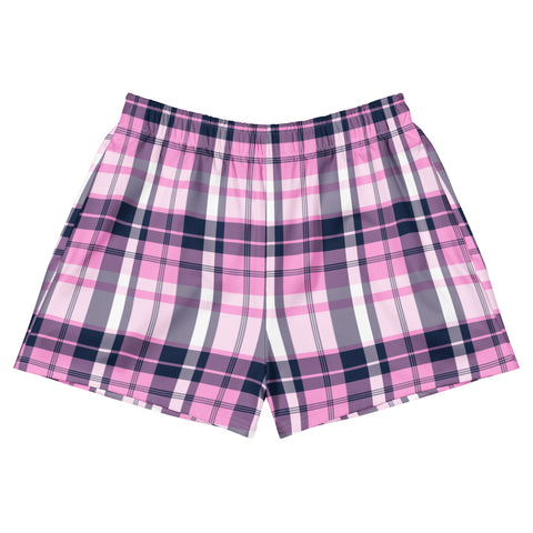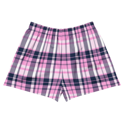 Women's Pink and Navy Blue Plaid Eco Athleisure Shorts | Extremely Stoked® Surf Style Activewear