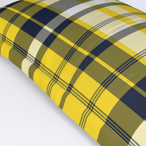 Yellow and Navy Blue Surfer Plaid Pillow Sham - Extremely Stoked® Eco Beach Luxe Collection